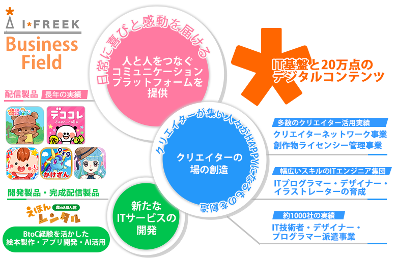 アイフリークモバイルは、コンテンツを通じて笑顔と幸せを世界中に届けます。